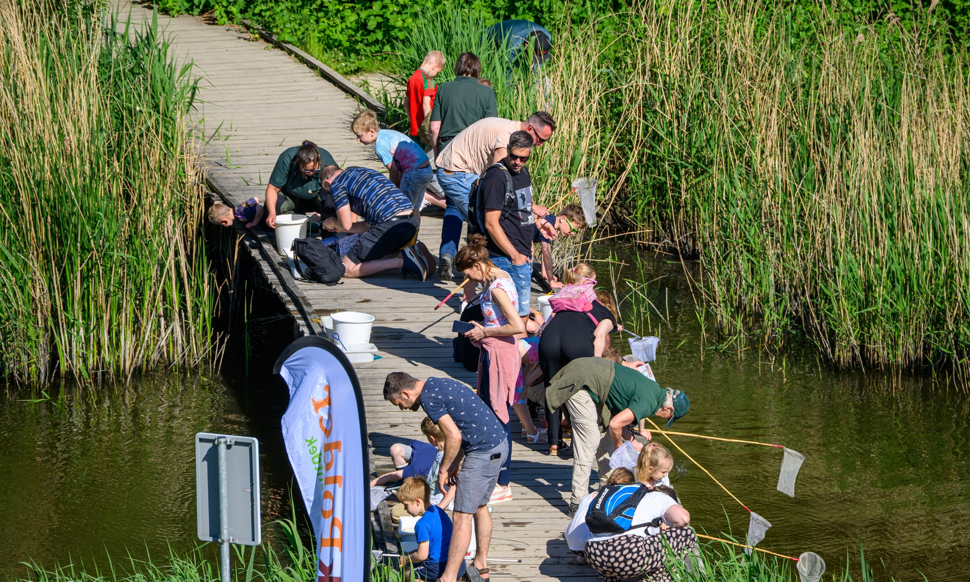 De Broekpolder bruiste van activiteit tijdens de Slootjesdag 2025 afgelopen zondag die door de Federatie Broekpolder was georganiseerd. Onder een strakblauwe lucht en een heerlijk zonnetje bogen de kinderen zich over de kreek bij het Klauterwoud in de Broekpolder, op zoek naar waterleven. Hoewel de droge periode in de polder merkbaar was, bleek er gelukkig genoeg water in de kreek te staan voor een geslaagde ontdekkingstocht. Enthousiast werden kikkervisjes gevangen, de beweeglijke juffernimfen bewonderd en de snelle duikerwantsen geobserveerd. De verrassing van de dag was de vondst van een heuse waterschorpioen! Nadat alle waterdiertjes aandachtig bekeken waren, werden ze voorzichtig teruggezet in hun natuurlijke omgeving. Tot de volgende Slootjesdag!